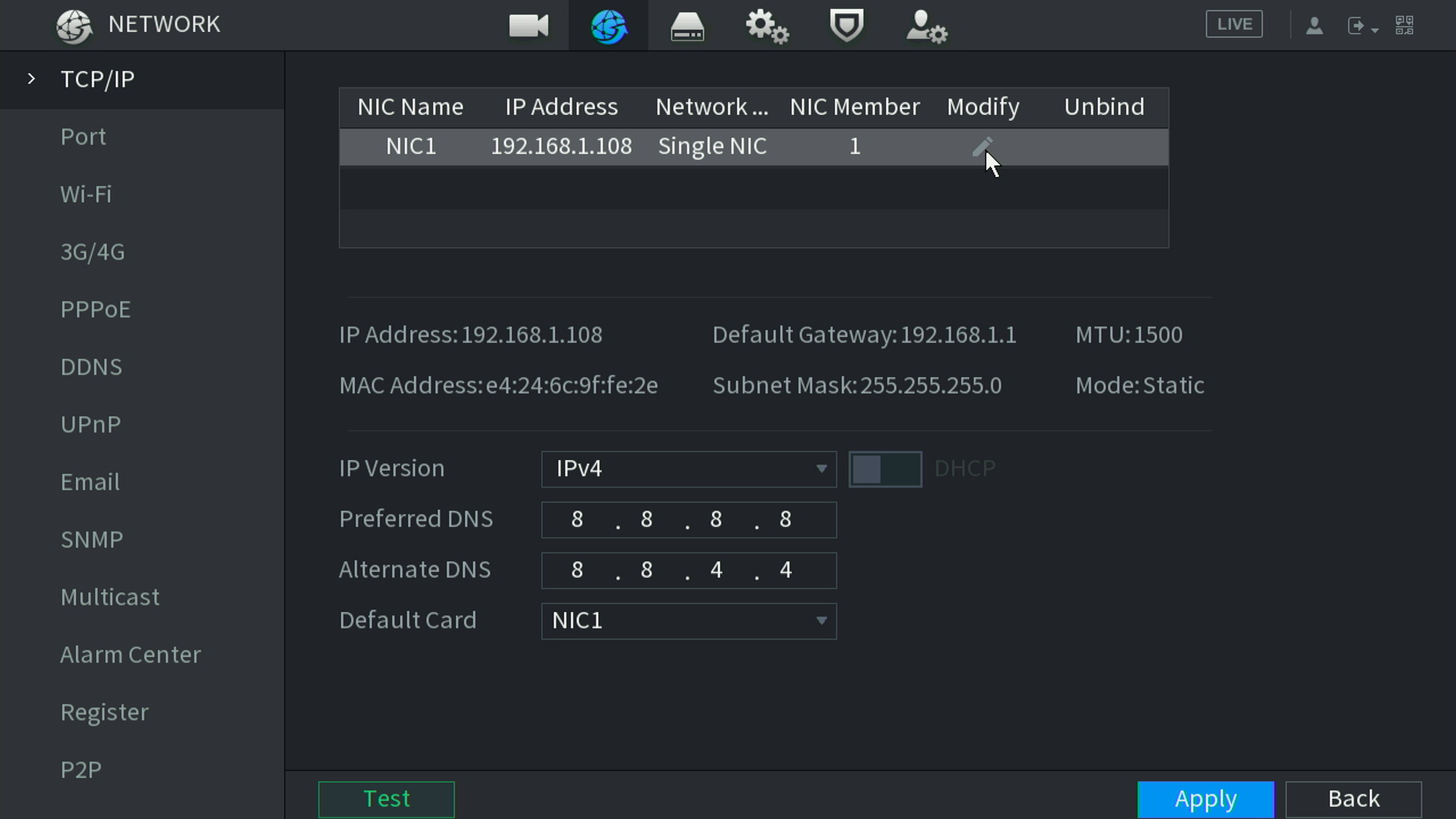 همچنین میتوانیم از قسمت TEST کانفیلیگ IP را میتوانیم چک کنیم