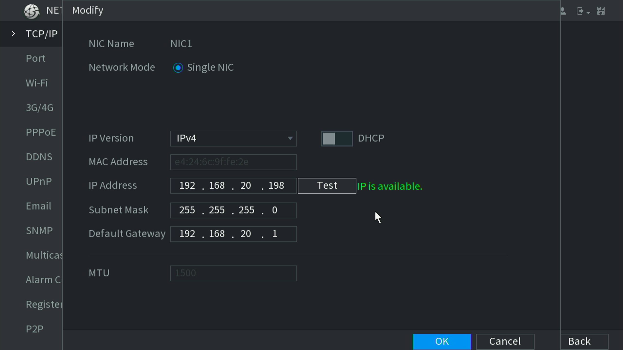 سپس داخل پنجره باز شده قسمت IP Address میتوانیم IP دستگاه را تغییر دهیم