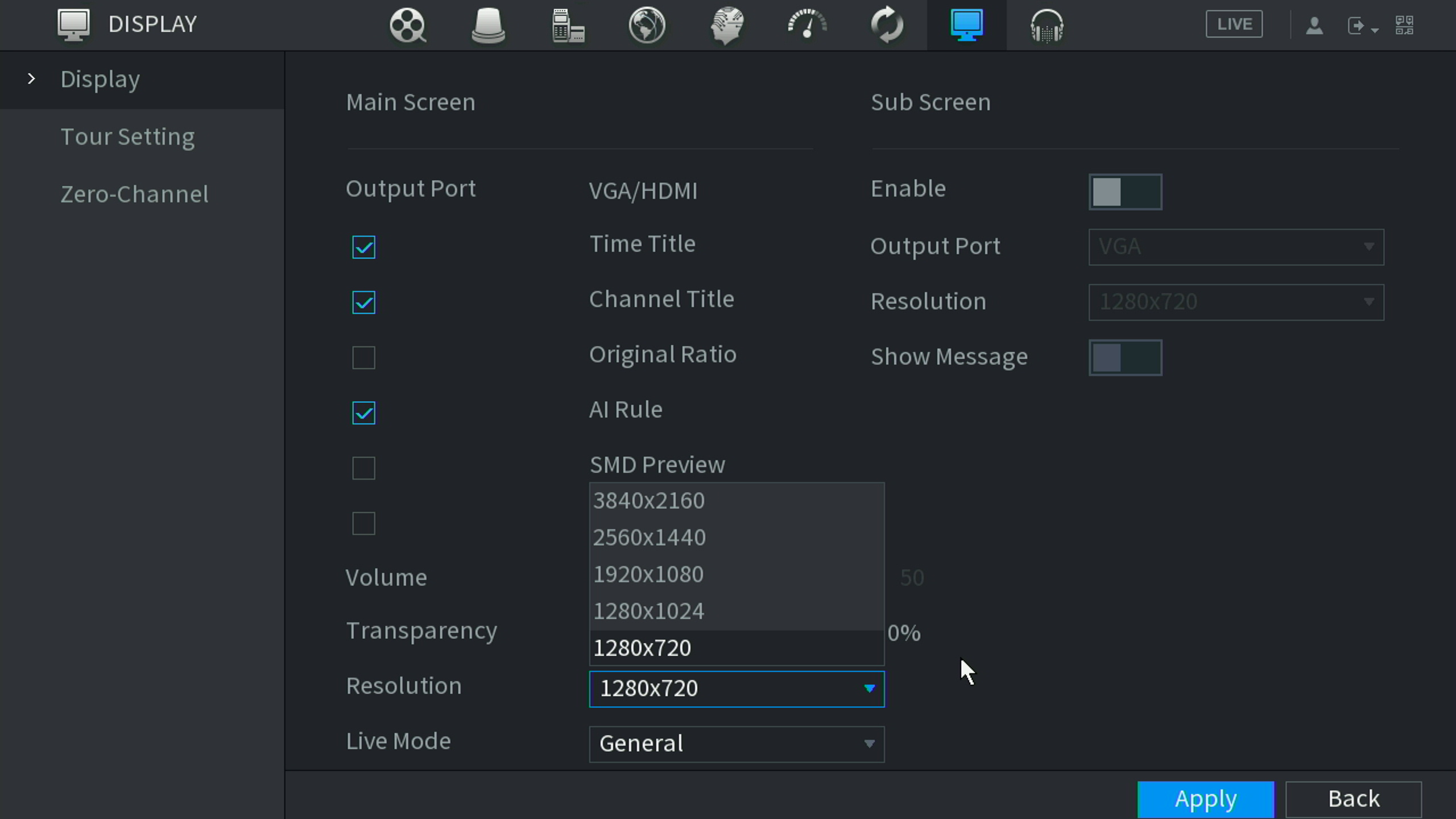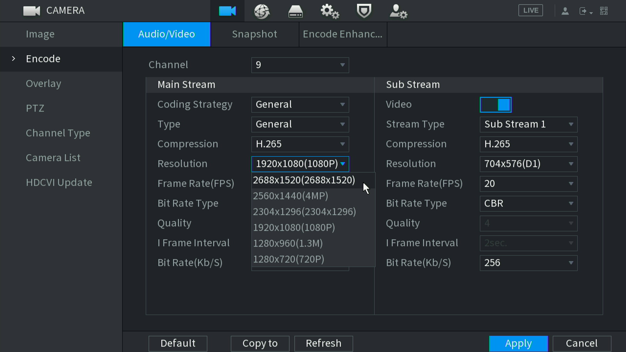 از قسممت resolution کیفیت مورد نظر را برای دوربین انتخاب میکنیم … در آخر apply را میزنیم