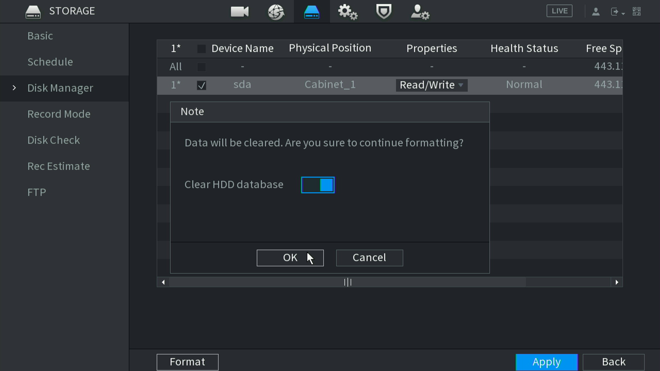 Clear HDD Database را فعال میکنیم و OK را میزنیم