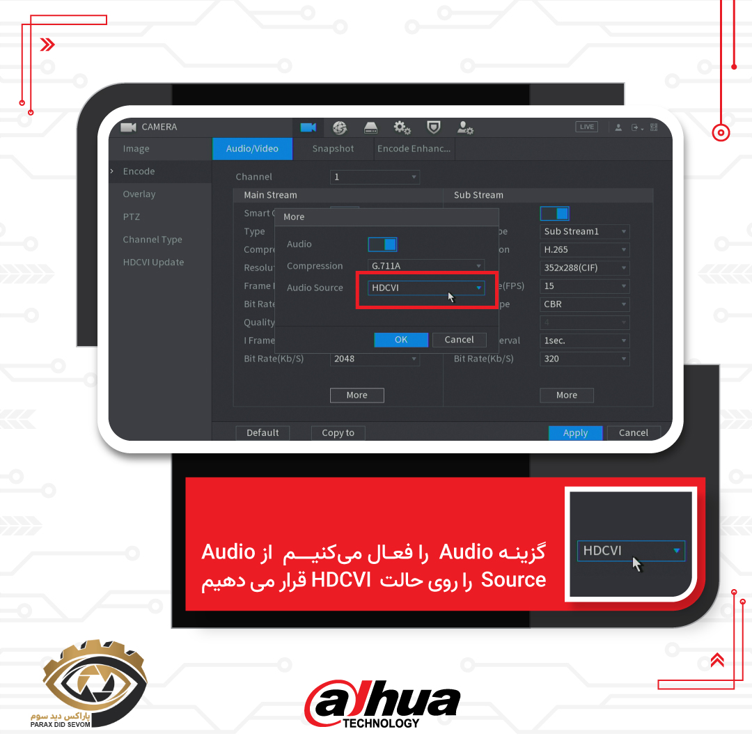 فعال سازی صدای دوربین میکروفن دار سی وی آی روی دستگاه XVR